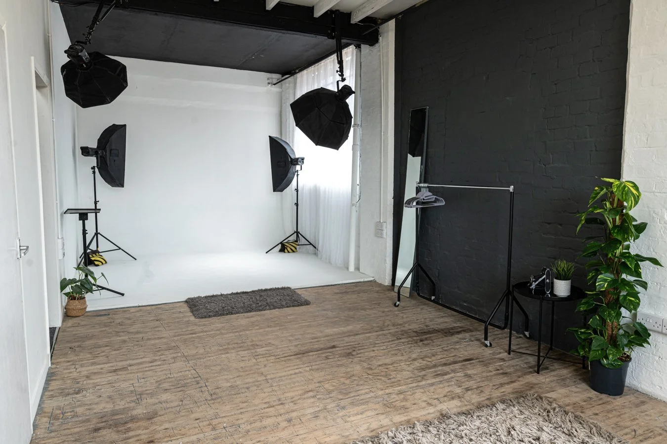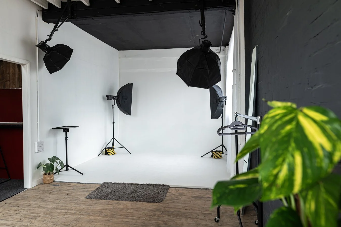 The Hideout is our more private studio space, spanning 420 square feet. This studio features two distinct sets: a 3-meter-wide infinity cove, ideal for e-commerce projects, and a classic lifestyle set perfect for social media content creation.
